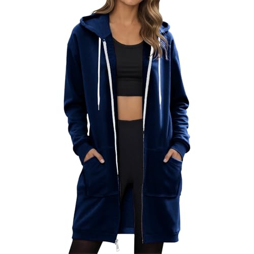 HOT ! Long Zip Up Hoodies For Women Fleece Zippered Casual Jacket Fall Tunic Coats Oversized Hooded Sweatshirt With Pockets