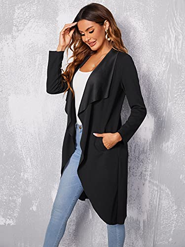 RAOGE Jackets for Women Jackets - Waterfall Collar Slant Pocket Coat (Color : Black, Size : Medium) 1