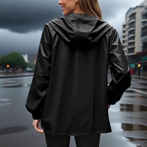 DDAPJ pyju Packable Rain Jacket Women Lightweight Waterproof Windbreaker Jackets Portable Hooded Raincoat with Zipper Pockets 4