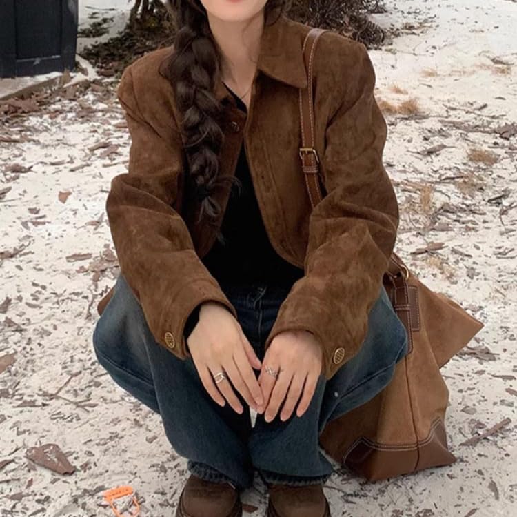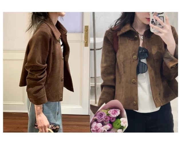 More information about Brown Suede Jacket Suede Blazer Faux Suede Leather Suit Jacket Cropped Bomber Jacket Old Money Fall Aesthetics