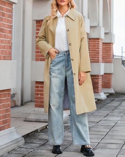 Women's Oversized Trench Coat Single Breasted Windproof Overcoat Classic Button Down Long Jacket 5