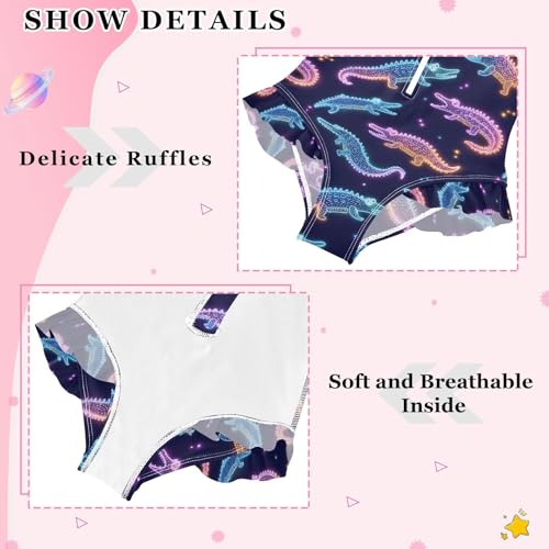 ALAZA Alligator Neon Black Girls One Piece Swimsuit Long Sleeve Rash Guard Swimsuits UV 50+ Swimwear Zipper 6