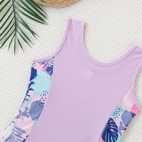 Kid Girl Swimsuit Bikini Set 2PC Bathing Suit for Girls, Tropical Girls' Full Coverage Swimwear Shorts Set(8-9Y) Purple 6