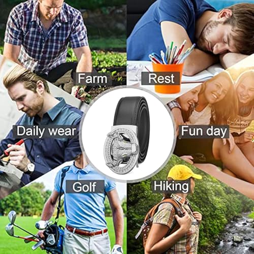 • Easy to Use Belt for Men:Just slide the dress belt into the sliding buckle and pull leather belt through, the ratchet buckle auto-locks.To release the ratchet belt, gently push the release lever on the side of the automatic buckle and lock will snap.
