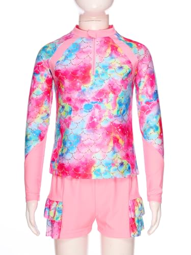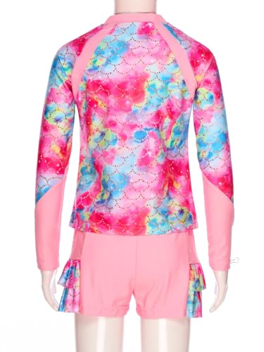 Moily Girls Floral Print Rash Guard Set Long Sleeve Swim Top with Board Shorts Sun Protective Swimsuit for Kids 6