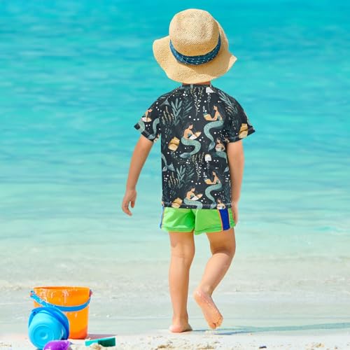 HOT ! ALAZA Kids Rash Guard Girls Toddler Swim Shirts Short Sleeve Mermaid Reading UPF 50+ 3T