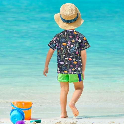 ALAZA Kids Rash Guard Girls Toddler Swim Shirts Short Sleeve Wild Flowers Black UPF 50+ 3T 2