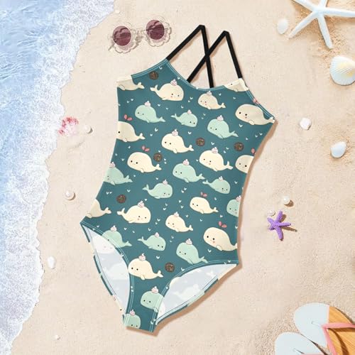 Girl's One Piece Swimsuit Blue Cute Whale Donut Beach Bathing Swimwear 1