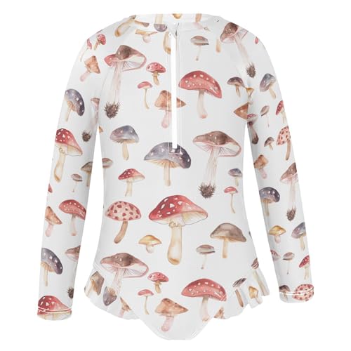 CaTaKu Girls One Piece Swimsuit Mushroom Cute Toddler Bathing Suit Long Sleeve UPF 50+ Rash Guard Swimwear 3-12Y 5