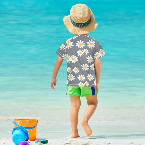 ALAZA Kids Rash Guard Girls Toddler Swim Shirts Short Sleeve Daisy Gray UPF 50+ 3T 5