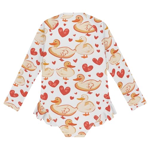 Duck and Red Heart Girls Long Sleeve Swimsuit Rash Guard One Piece Bathing Suits Zipper 3-12T 3