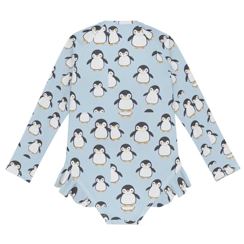 Cartoon Penguin Light Blue Girls Long Sleeve Swimsuit Rash Guard One Piece Bathing Suits Zipper 3-12T 5