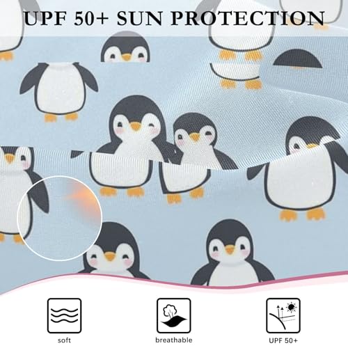 Cartoon Penguin Light Blue Girls Long Sleeve Swimsuit Rash Guard One Piece Bathing Suits Zipper 3-12T 7