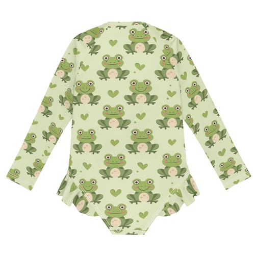 Green Frog and Love Heart Girls Long Sleeve Swimsuit Rash Guard One Piece Bathing Suits Zipper 3-12T 3
