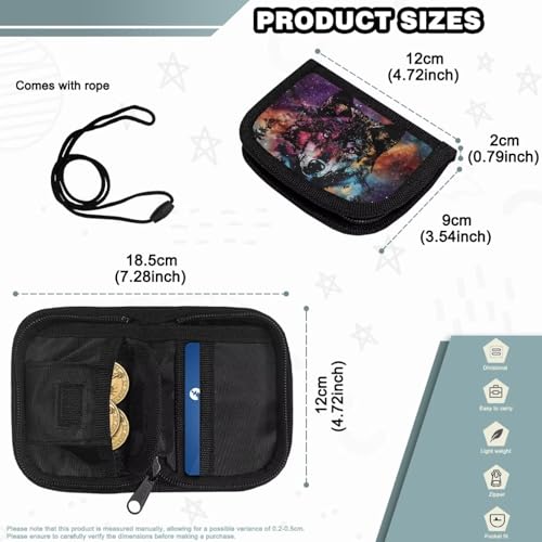 HOT ! Galaxy Wolf Wallet Kids Boys Small Kids Wallet with Lanyard for Boys Ages 8-10 Cool Bifold Wallets with Compartments Card Slots Daily Essential