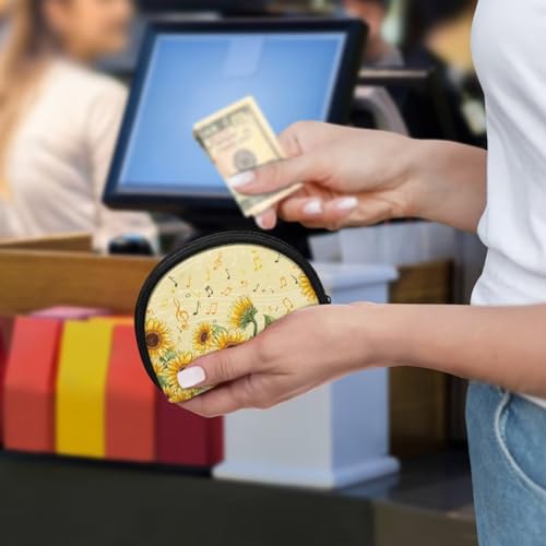 Small Coin Purse Sunflower Music Mini Wallet, Change Purse for Kids, Card Case for Woman 6