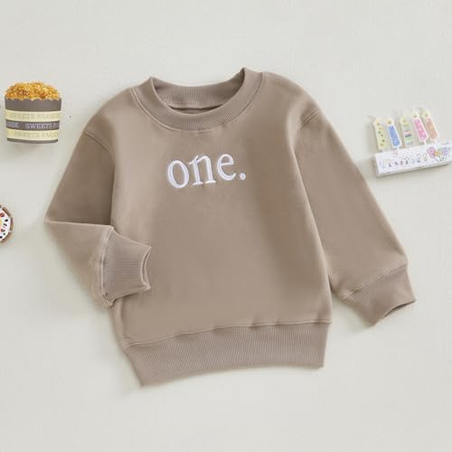 Toddler Baby Boy Girl One/Two Years Birthday Outfit Long Sleeve Embroidery Sweatshirt Shirt Crewneck Pullover Tops 4