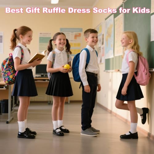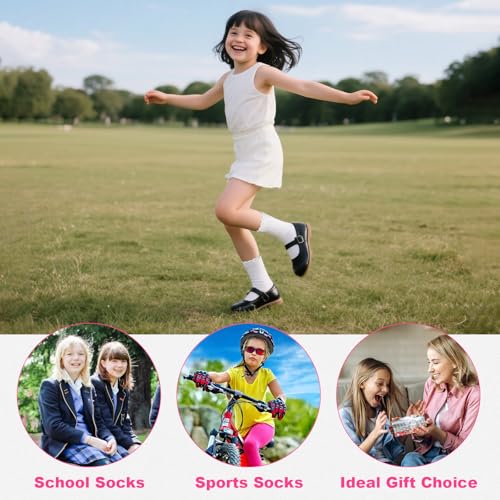 • Cute White Socks for School : SIZE: M ( 6-8 Years ) : US 10-13; L ( 8-12 Years ) : US 13-3. BISOUSOX gets multi colors for these girls uniform socks, bright white socks for girls, lovely ruffle top cute pink bow flower delicate hearts are all best for school dresses and other casual clothes