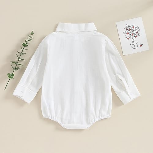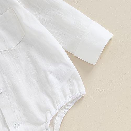 Baby Boy Button Down Shirt Newborn Solid Color Long Sleeve Romper Gentleman Lapel Bodysuit with Pocket 5