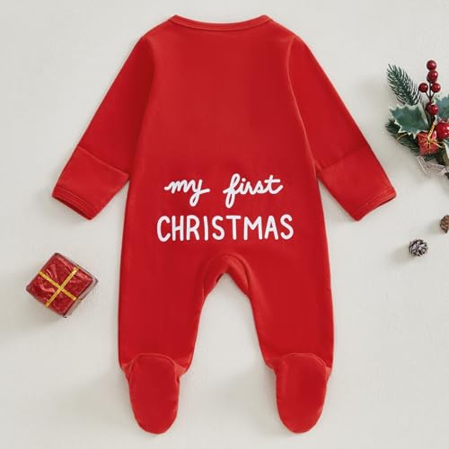 Lamuusaa Newborn Baby Girl Boy Christmas Outfit My First Christmas Footie Romper Zipper Bodysuit Jumpsuit Fall Winter Clothes 6