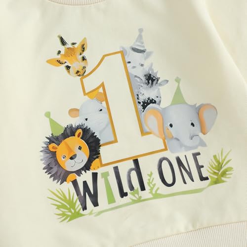 WZTYYDS Baby Boy First Birthday Outfit Long Sleeve Sweatshirt Tops Wild One Birthday Shirt Pants Set Fall Clothes 4