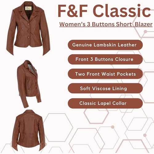 Women's Leather Blazer - Casual Slimfit 3 Button Lightweight Soft Genuine Lambskin Short Lenght Fashion Suit Jacket for Women 7