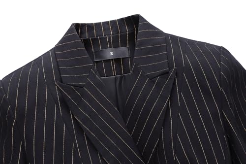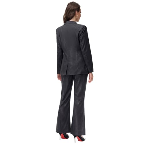 Lamgool Women's Pinstrip Suit Gold Lines 2 Pieces Slim Fit Business Blazer Flared Pants Set for Work 6