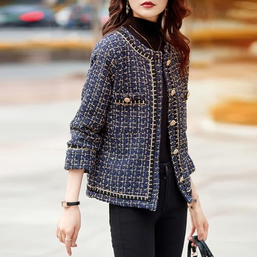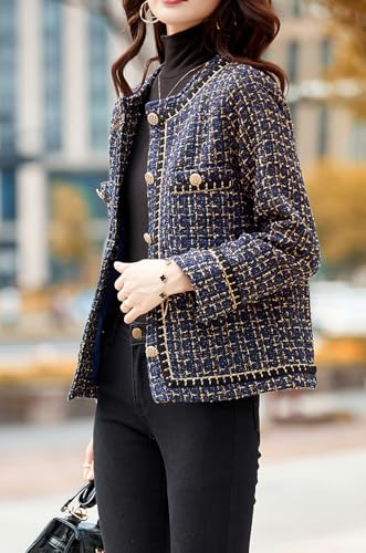 • The business casual womens blazer is made of soft tweed material, offering a unique texture and adds a touch of elegance to your wardrobe, which is comfy and warm to wear in spring, fall and early winter.