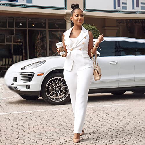 • Design:Women's Business Blazer Suit Ruffles Sleeveless Two Piece Solid Work Pant Suit Business Office Lady Suits Sets.Bodycon work slacks hugs your buttock to show your body curve, solid color blazer set suit more classic, fashionable and not dull. A must have piece in your wardrobe.