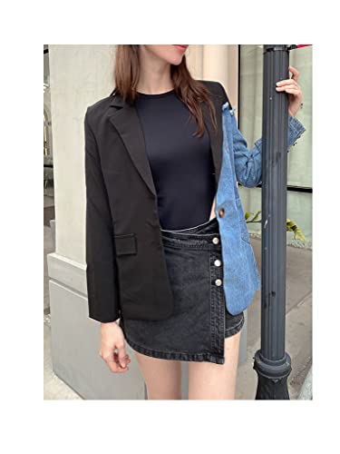 Vintage Denim Patchwork Suit Coat Female Long Sleeve Irregular Design Loose Fashion Women Blazer 6