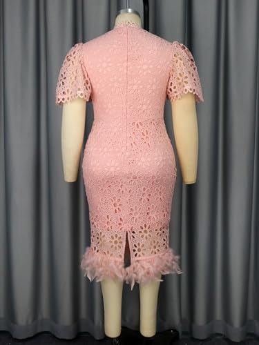 • Feature: Pink lace dress for women is elegant and dignified, featuring stand collar, hollow-out flower patterns, bodycon style with feathers trim, short puff sleeve, back split, knee length.