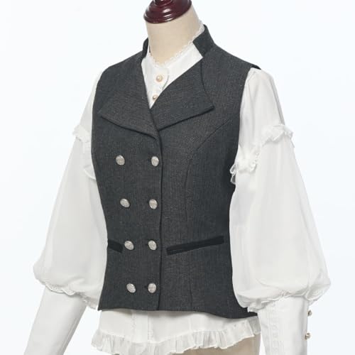 HOT ! CAMDOM Women 50s Vintage Suit Vest Work Tweed Slim Fit Waistcoat V Neck Double Breasted Sleeveless Blazer Jacket with Pockets