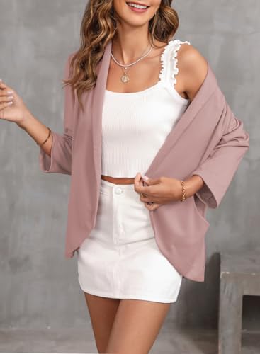 Happy Sailed Blazer Jackets for Women Open Front 3/4 Sleeve Work Office Suits Spring Summer Fashion 2025 Pink Small 3