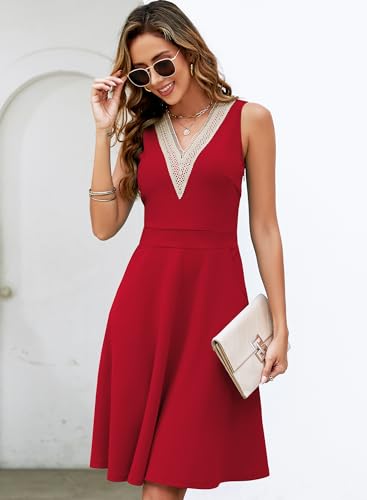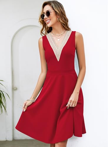 • Versatile sleeveless swing dress features a lace trim v-neckline,high waisted a line flattering flared dresses easy to fits all body types.Ladies modest boutique pretty aline dresses