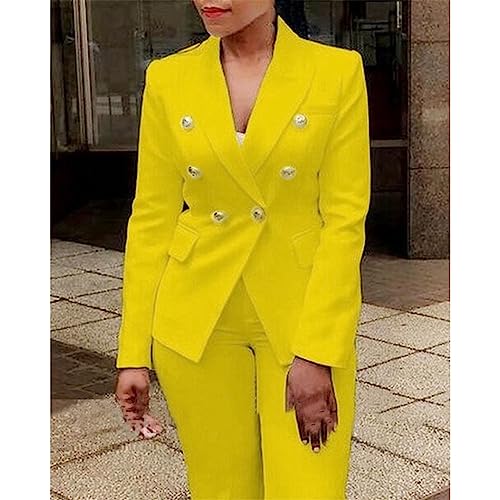Women Double Button Blazer & Pants Suit Set 2 Piece Sets Womens Outfits Blazer Set 2