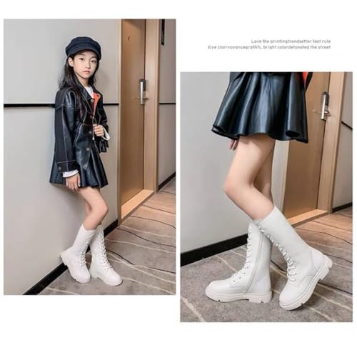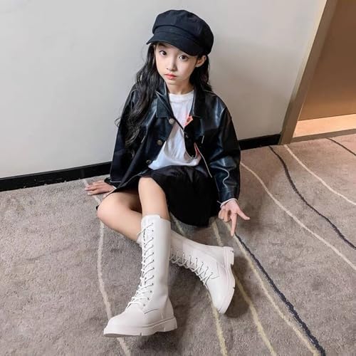Kid's Girl's Leather Lace-Up Side Zipper Fashion Riding Boots Girls Winter Boots Dress Princess Shoes 5