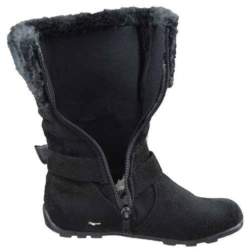 HOT ! Kids Mid Calf Boots Fur Cuff and Studded Strap Casual Comfort Shoes Black