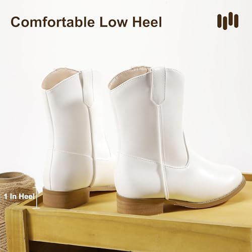 • Fashion Design: Hehainom girls cowgirl boots blend western cowboy charm with modern minimalist style. While using classic round toe and 1-inch low heel, the fine texture, smooth touch, and neat stitching details showcase cowgirl boots for girls excellent