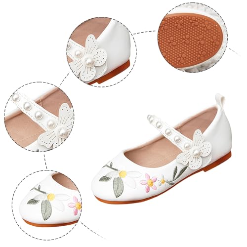 IWIHMIV Toddler Girls Dress Shoes Bow Pearl Comfortable Lightweight School Non Slip Soft Bottom Flat Shoes 4