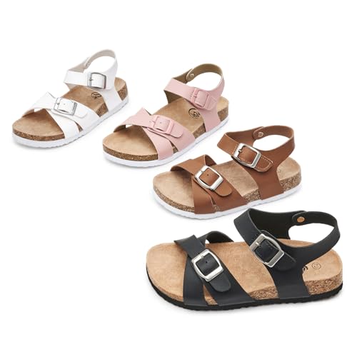 Trary Girls Sandals Open Toe Casual Summer Shoes with Cork Footbed Comfortable Flat Sandals for Little Kids 4