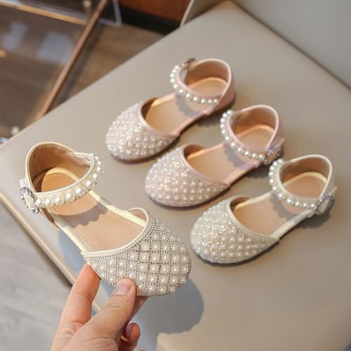 Toddler Girls Glitter Pearl Sandals Adjustable Straps Closed Toe Kids Mary Jane Shoes Dress up Wedding Outdoor 6