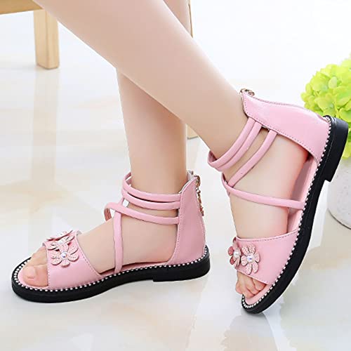 Kids Girls Dress Sandal Open Toe Low Heels Ankle Zipper Bow 𝐆ladiator Strappy Wedding Princess Flower Sandals 5