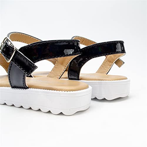 Children Flat Toe Sandals Flower Beach Shoes Little Girls Sandals Sandals for Outer Wear Baby Beach Sandals (Black, 8-9 Years Little Child) 5