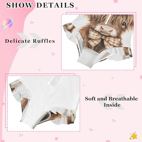 Highland Cow with Sunflower Girls Long Sleeve Swimsuit Rash Guard One Piece Bathing Suits Zipper 3-12T 5