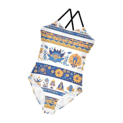 More information about KLL Vector Illustration Ukrainian Folk Pattern Girl 1 Piece Swimsuits Summer Swimwear Adjustable Shoulder Strap UPF 50+