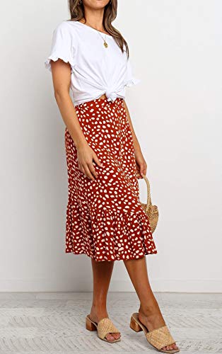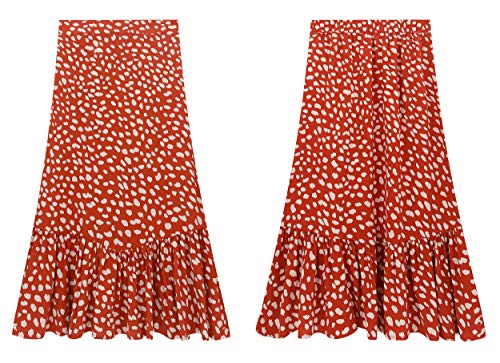 R.Vivimos Women's Summer Cotton Boho Irregular Polka Dot Print Ruffled A-Line Flowy Midi Skirts 7