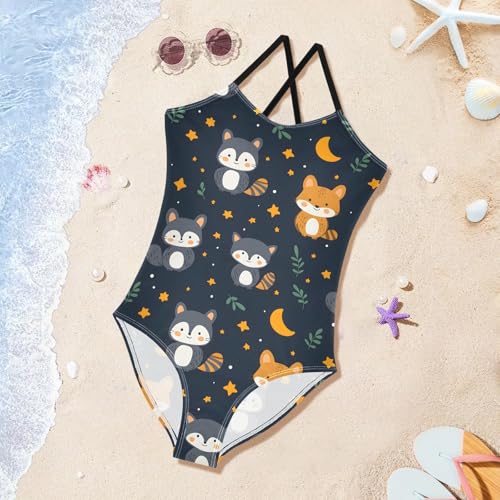 Girl's One Piece Swimsuit Nighttime Raccoon Beach Bathing Swimwear 6