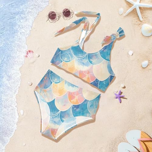KLL Mermaid Scales Watercolor Fish Girls' 2 Piece Bikini Set Scoop Neck Swimsuits Swimming Suits Adjustable Shoulder Strap 4