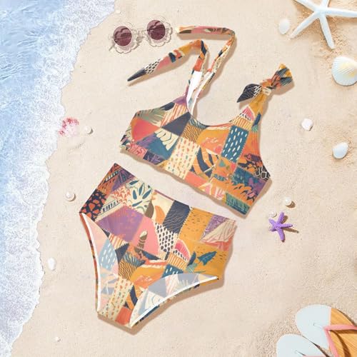 KLL Colored African Patchwork Motifs Girls Two Piece Bikini Sets Quick-Dry Swimming Swimwear Swimsuit 2