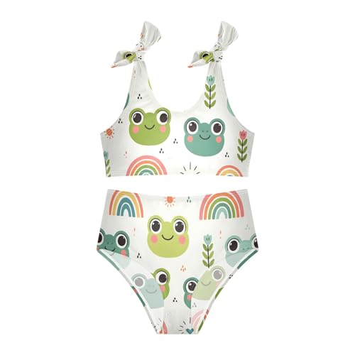 Girls' Bikini Set, Cute Frog Head Small Rainbow Kids Swimsuit 2 Pcs Beach Bathing Suit 4